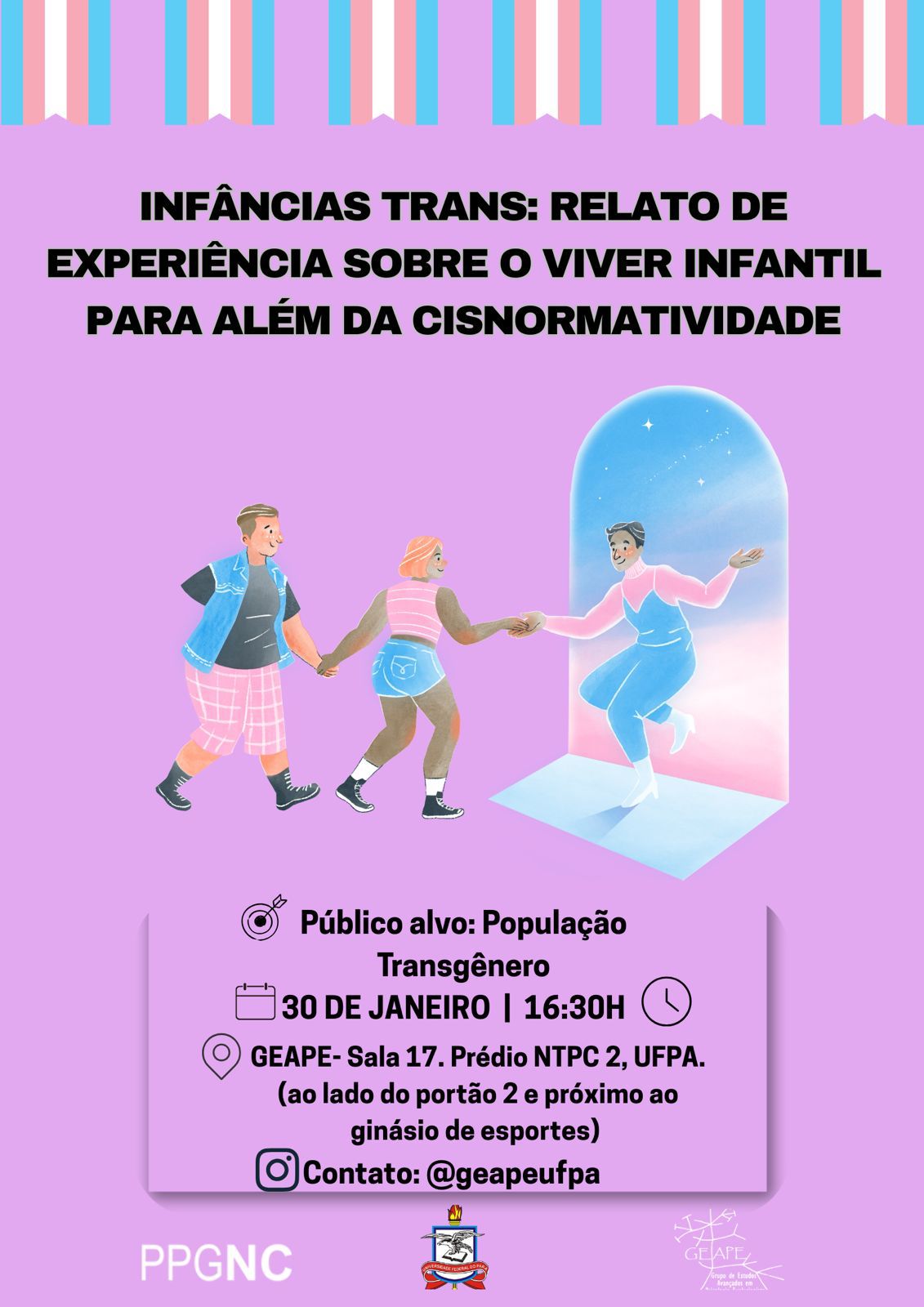 Convidamos a comunidade trans, estudantes e todas as pessoas interessadas para participar da roda de conversa “Infâncias trans: relatos de experiência sobre o viver infantil para além da cisnormatividade”.